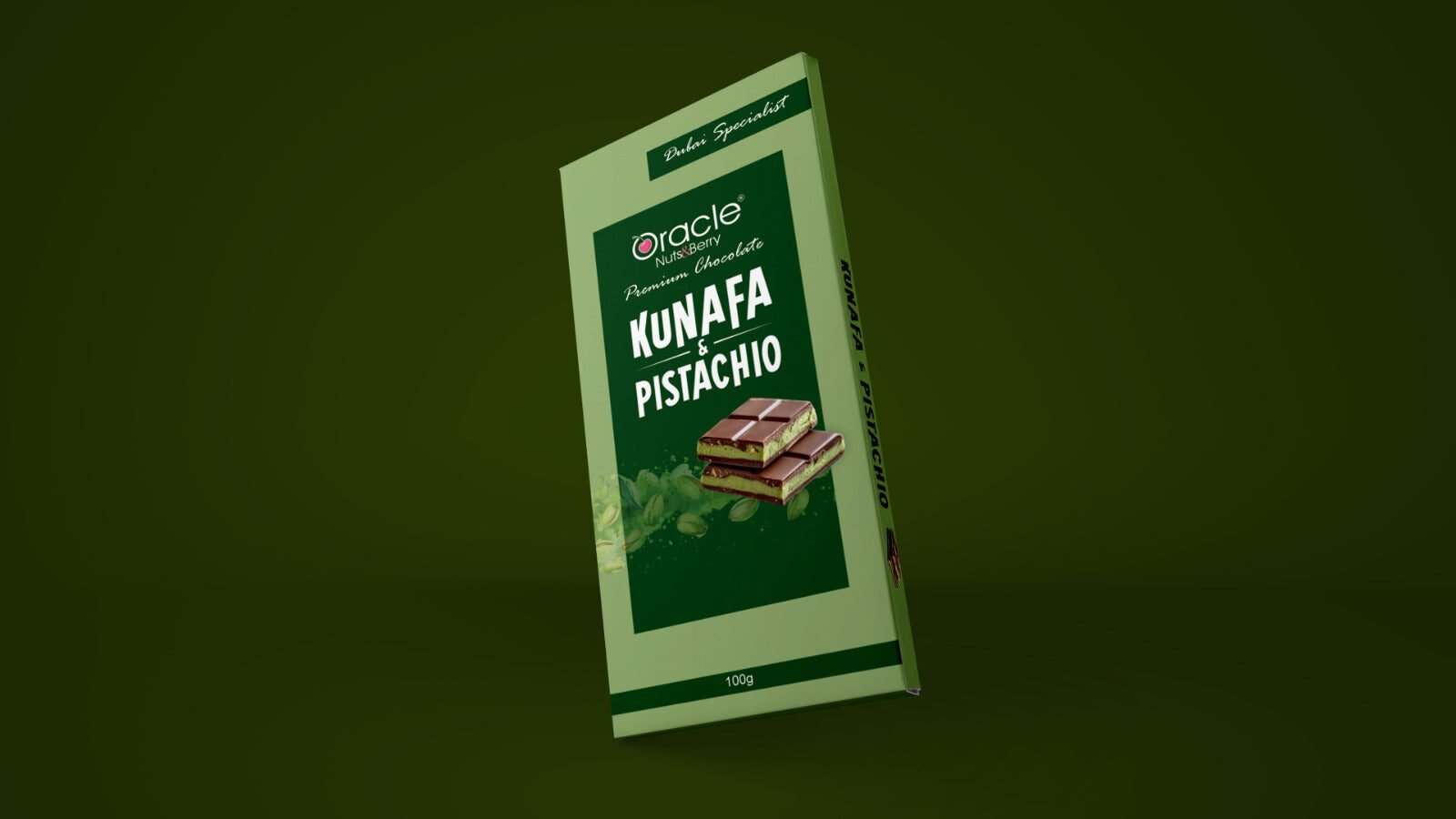Oracle Nuts & Berry Premium Dubai Pistachios Kunafa Bar Chocolate 100gm – Rich Pistachio Kunafa Filling in Smooth Chocolate